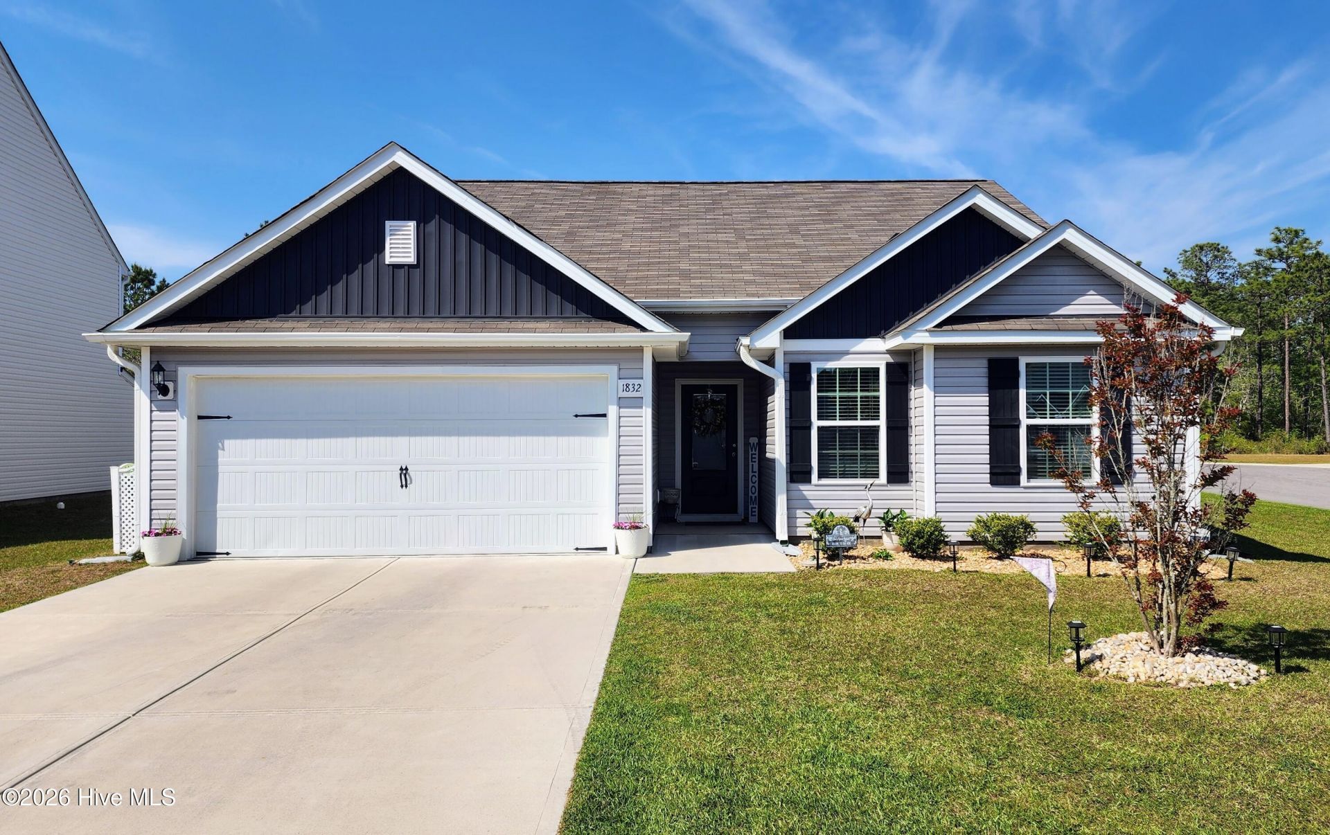 Welcome to 1832 Tori Ct. in the desirable New South Bridge community in Bolivia, where comfort, convenience, and coastal living come together seamlessly. Ideally located just minutes from the sandy shores of Oak Island and the charm of Southport, this home offers the perfect balance of relaxation and accessibility.This inviting three-bedroom home is located on a cul-de-sac, corner lot with a tree-lined backyard. It features a foyer entry, 2 car garage, and laundry room as well as a thoughtfully designed, open-concept layout. The floor plan provides space for both everyday living and entertaining. The chef-ready kitchen is a true centerpiece, featuring stainless steel appliances, granite countertops, abundant counter space, and a breakfast bar that overlooks the spacious living area - perfect for hosting or staying connected with family and guests. Elegant 36'' upper wood cabinets with crown molding add a refined touch.The primary suite is a standout retreat, filled with natural light from two large windows and a vaulted ceiling that creates a bright and airy atmosphere. The en-suite bathroom offers a spacious vanity and a walk-in shower, delivering both comfort and functionality.Living in South Bridge means enjoying fantastic community amenities, including a refreshing pool and a unique Par 3 9-hole golf course, which is available free to residents and their guests. Whether you're looking for a full-time residence or a coastal getaway, this home checks all the boxes for easy, enjoyable living near some of North Carolina's most beloved coastal destinations.