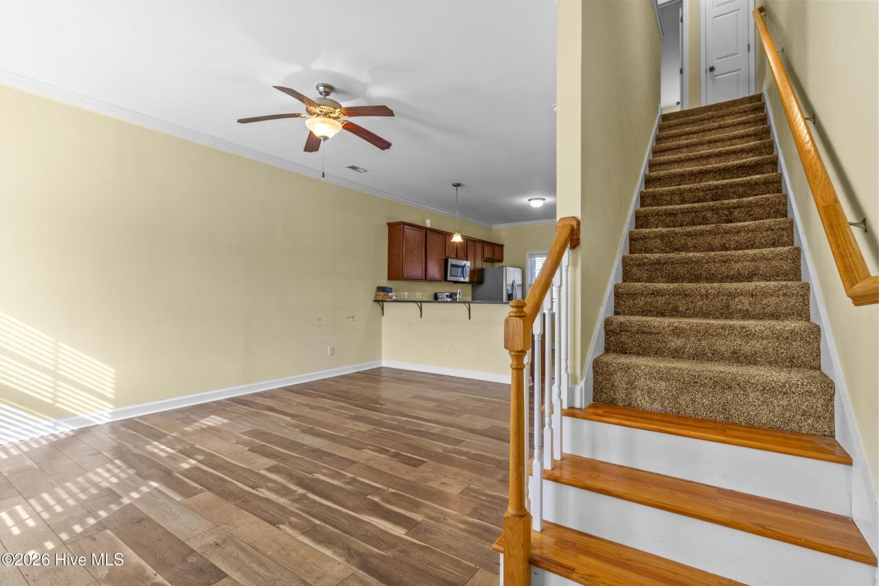 This beautifully maintained 2-bedroom, 2.5-bath townhome offers over 1,200 heated square feet of comfortable living space. The open-concept main level features 9-foot flat ceilings, gorgeous LVP flooring, granite countertops, stainless steel appliances, and an abundance of cabinet space - perfect for cooking and entertaining.Upstairs, you'll find two spacious bedrooms, each with its own private full bathroom. The massive primary suite boasts a huge closet and a double-sink vanity in the en-suite bath. A convenient half bath is located downstairs for guests.Enjoy relaxing evenings on the screened-in porch with ceiling fan overlooking the backyard.Ideally located just minutes from the back gate of Marine Corps Base Camp Lejeune, as well as nearby boat ramps, fishing docks, beaches, and shopping.